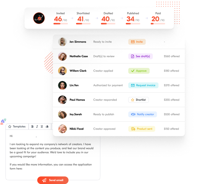 Manage all of your influencers in one place and have convenient communication with them. A long-term relationship with your influencers will win trust for your audiences.